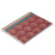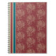 An elegant spiral Notebook, with a formalised floral pattern and deckchair stripes in beige and dark blue on a rich burgundy background. Would make an excellent journal!