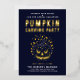 This Halloween-themed invitation beckons friends to a spooky Halloween pumpkin carving party. Featuring bold modern gold foil typography on a dark blue night sky background, and delicate orange leaves, it sets a mysterious and festive tone. The back of the invitation mirrors the same dark blue, maintaining a cohesive design. Completely customisable, the text can be edited to create a personalised invitation for your scary trick-or-treat magical party. Perfect for those who want to celebrate in style, this invitation ensures your event will be a memorable and enchanting gathering.