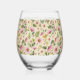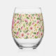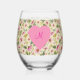 Elegant Spring floral With Monogrammed Heart Stemless Wine Glass