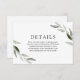Elegant Spring Summer Green Leaf Wedding Details Enclosure Card