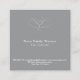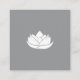 Elegant square business card in grey and white, with a delicate grey lotus flower outline on the front and a white flower on the back.
