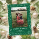 Elegant Star Frame Dark Green One Photo Holiday Card