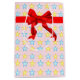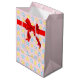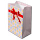 Beautiful gift bag with elegant star pattern and network ribbon on pink background. Ideal for all events such as baby showers, birthdays, celebrations, wedding showers, etc.