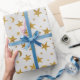 Elegant Stars Moon Silver Grey Gold Metallic Sky Wrapping Paper