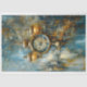 🖤 Steampunk Elegance Clock Tissue. This tissue features a beautifully detailed steampunk clock set against an abstract, richly textured background. The ornate clock face with blue Roman numerals is framed by intricate brass and copper details, complemented by vintage-style lanterns that emit a warm glow. The background, an artistic blend of blues, golds, and grays, creates a sense of depth and movement, adding to the overall industrial elegance of the design. Perfect for decoupage, scrapbooking, and other creative endeavors, this tissue paper brings a unique blend of steampunk sophistication and modern artistry to your projects. Elevate your crafts with this exquisitely detailed and imaginative tissue design.. NOTE 1. The design is not taken into the “bleed area” as this can not be guaranteed to print, hence there is a small border around the design. NOTE 2. Each of my designs is original, boasting high-resolution imagery making it versatile for a range of Zazzle products.