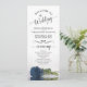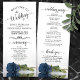This beautiful wedding program features an elegant design with a single long stemmed dusty steel blue or blue grey coloured rose lying on its side reflecting in water. The titles are written in fancy script calligraphy, and there is space for your ceremony and wedding party details, as well as a short thank you for your guests. Wonderful way to welcome your friends and family to your wedding celebration.