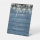 Elegant String Lights Blue Rustic Wood Food Menu Pedestal Sign