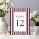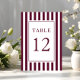 Elegant Striped Burgundy Wedding Table Number