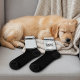 Elegant black and gray monogrammed signature crew socks. Personalized with a full name and a monogram in the background and decorated with black and grey stripes. Neutral colors and stylish lines make these socks a great affordable and practical personalized gift.