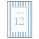 Elegant Striped Powder Blue Wedding Table Number.