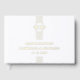 This elegant Stripes and Initials white Wedding Guest Book showcases a collection of vertical gold foil stripes positioned at the centre. Enclosed within a circular frame accented with two small hearts, the book proudly presents the initials of the happy couple. The back cover is adorned with a captivating pattern of gold stripes against a white background, adding a touch of sophistication to this beautiful keepsake.