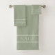 Elegant stripes on sage Bath Towel Set. Text can be personalised. Text only on one side! Elegant simple design for nature lovers!