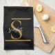 Elegant Stylish Black Gold Monogram Script Name Tea Towel