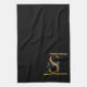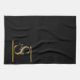 Elegant Stylish Black Gold Monogram Script Name Kitchen Towel.