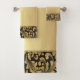 Elegant Stylish Black Old Gold Swirls Bath Towel Set