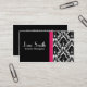 Hot Pink, Black and White Elegant Stylish Classy Damask Floral Professional Business Cards. Fonts, font size, font colour and font position can be customised to suit your style.