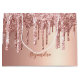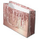 This pretty bag design features faux pink & copper rose gold dripping glitter metallic texture and elegant calligraphy font.