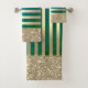 Elegant Stylish Green Gold Stripes Glitter Shiny Bath Towel Set