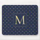 Elegant Stylish Navy Blue Gold Polka Dots Monogram Mouse Pad