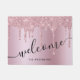 This pretty doormat design features faux pink & rose gold dripping glitter metallic texture and elegant font.