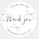 Modern hairstylist thank you sticker design with faux rose gold scissors, white background and elegant calligraphy font.