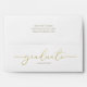 This design features an elegant stylish script chic gold envelope, with a graduate graduation grad template, a simple modern return address, return address printed back flap, graduation grad mailing supplies,5x7 a7 envelope size, a gold gradient calligraphy script, class of 2022 2023 2024, graduation grad matching envelope, graduation graduate stationery