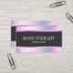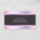 Modern business card design featuring faux holographic metallic texture, dark purple stripe and elegant calligraphy font.