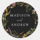 Elegant Summer Wildflower Wreath Black Wedding Classic Round Sticker