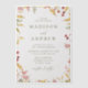 Celebrate your special day with our Elegant Summer Wildflower vellum wedding invitations, featuring your names and wedding details in classic green lettering. This stunning design is framed by an array of watercolor flowers and lush greenery in vibrant shades of golden yellow, pink, and purple, set against a sheer vellum background. Perfect for spring and summer weddings, these invitations beautifully capture the essence of nature's charm. Personalise this vibrant and nature-inspired design to reflect your unique love story and create a lasting impression for your guests.