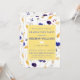 NewParkLane - Elegant Graduation Party Invitation, featuring an indigo /cornflower blue and yellow wildflower pattern, with a yellow frame for texts, all in elegant script typography. Cute design for a springtime graduation celebtration.