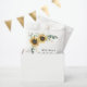 Create a modern Sunflower Floral favours with this cute template featuring beautiful rustic floral bouquet, geometric gold effect frame, with modern simple typography.