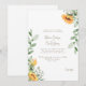 Sunflowers & Greenery Wedding Invitation. No Parents Listed. Gold text. Modern Script font.