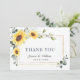 Elegant Sunflowers Eucalyptus Greenery Thank You Card.