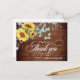Elegant Sunflowers Eucalyptus Rustic Thank You Postcard.