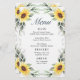 Elegant Sunflowers Greenery Wedding Dinner Menu