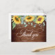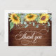 Elegant Sunflowers Rustic Wood Wedding Thank You Postcard