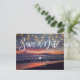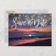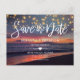 Elegant Sunset Beach String Lights Summer Wedding Announcement Postcard