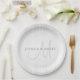 Elegant Surname Monogram & Thin Grey Stripes Paper Plate