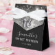 Make your Sweet 16 celebration unforgettable with this sleek and elegant favour box! Featuring a bold bubble-style "16" in stunning faux silver, the design stands out against the sophisticated black background. Sparkling silver glitter adorns the top flap, adding a glamourous touch to this stylish keepsake. Perfect for holding party favours, this customisable box is a chic addition to your milestone celebration.