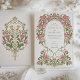 This exquisite wedding invitation set features a stunning Art Nouveau design adorned with intricate sweet pea flower motifs. The front of the invitation beautifully frames the wedding details with lush green foliage and delicate sweet peas in shades of pink and soft yellow, set against a classic white background. The back of the invitation showcases a symmetrical arrangement of matching flowers, creating a cohesive and sophisticated look. Perfect for a garden or vintage-themed wedding, this invitation set combines timeless elegance with artistic beauty, making it an unforgettable piece of wedding stationery.