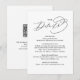 Elegant minimalist modern swirl script design in black and white, additional information and wedding website QR code on the back, simple and romantic. Great details card for modern classic wedding, simple traditional wedding and luxury vintage wedding.
