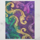 This versatile scrapbook paper features a vibrant and intricate design that is perfect for a variety of projects, especially those with a Mardi Gras theme. The front side of the paper showcases a rich tapestry of swirls in shades of gold, green, purple, and magenta, set against a deep purple background. The ornate flourishes and delicate dots create a sense of movement and festivity, reminiscent of the lively and colourful atmosphere of Mardi Gras celebrations. This paper is ideal for crafters, scrapbookers, and DIY enthusiasts looking to add a touch of elegance and festivity to their projects. It can be used for making greeting cards, party invitations, decorative accents, or any other creative endeavour that calls for a bold and celebratory design. The reverse side of the paper features a solid sea green colour, providing a complementary backdrop that enhances the overall aesthetic and offers versatility for any craft.