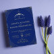 Elegant Tarot Gold Foil Wedding Invitation on Navy blue background.