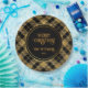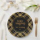 Elegant Tartan Black Gold Glitter Paper Plate