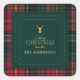 Elegant Tartan Plaid Merry Christmas Family Name Square Sticker