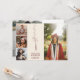 Celebrate the monumental achievement of graduation with this beautifully designed announcement card. The front of the card features one central photo of the graduate, showcasing their proud moment, surrounded by three smaller accent photos that capture different aspects of their journey. The word "Graduate" is elegantly scripted in a graceful font, with a charming tassel accent, adding a touch of flair to this special occasion. This design blends modern style with timeless tradition, creating the perfect keepsake for friends and family to cherish for years to come.