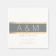 Your own initials in a grey and faux gold stripe, and names in a thin font style... with custom text 'Thank you for celebrating with us'... for a nice wedding party