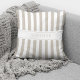 Personalised Elegant Taupe Beige Stripes Pattern Name Print Throw Pillow