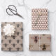 Elegant taupe, black and blush pink bee-themed wrapping paper sheet