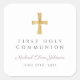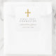 Personalised Elegant Taupe Cross Boy First Communion Square Sticker.